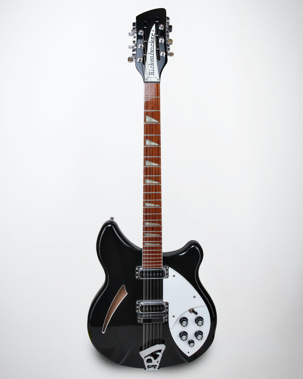 2004 Rickenbacker 360-12, Jetglo finish, Maple semi-hollow body, Maple neck, Rosewood fingerboard with triangle inlays, high gain pickups, 24 3/4" scale length, 1.63" nut width, excellent condition, no visible fret wear, dings or scratches, very minor binding discoloration next to strap buttons, includes original hardshell case.