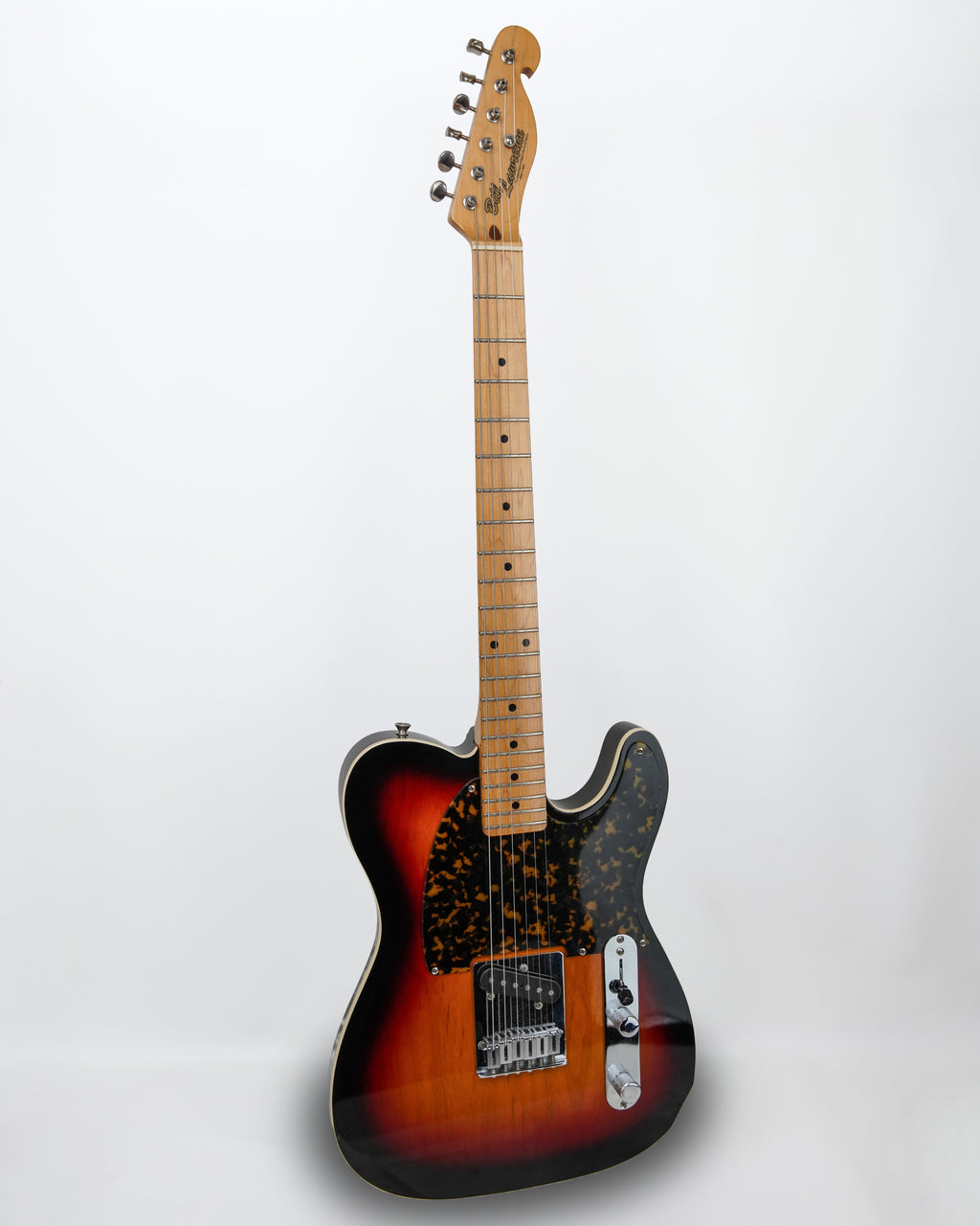 This "Esquire" Style guitar was made for the Japanese market and it weighs 7 pounds and 12 ounces. Unlike most Esquire type guitars there is no route under the one-ply thick transparent tortoise pickguard. The pickup is original and the knobs, control plate and electronics have been changed with quality parts and the original parts are included in the sale. It features a bound alder body with a belly cut and a single stock T2 single coil pickup in the bridge. The one-piece maple neck has a slender soft V shaped profile with very little wear on the original jumbo frets. It includes a rectangular molded hard shell case.