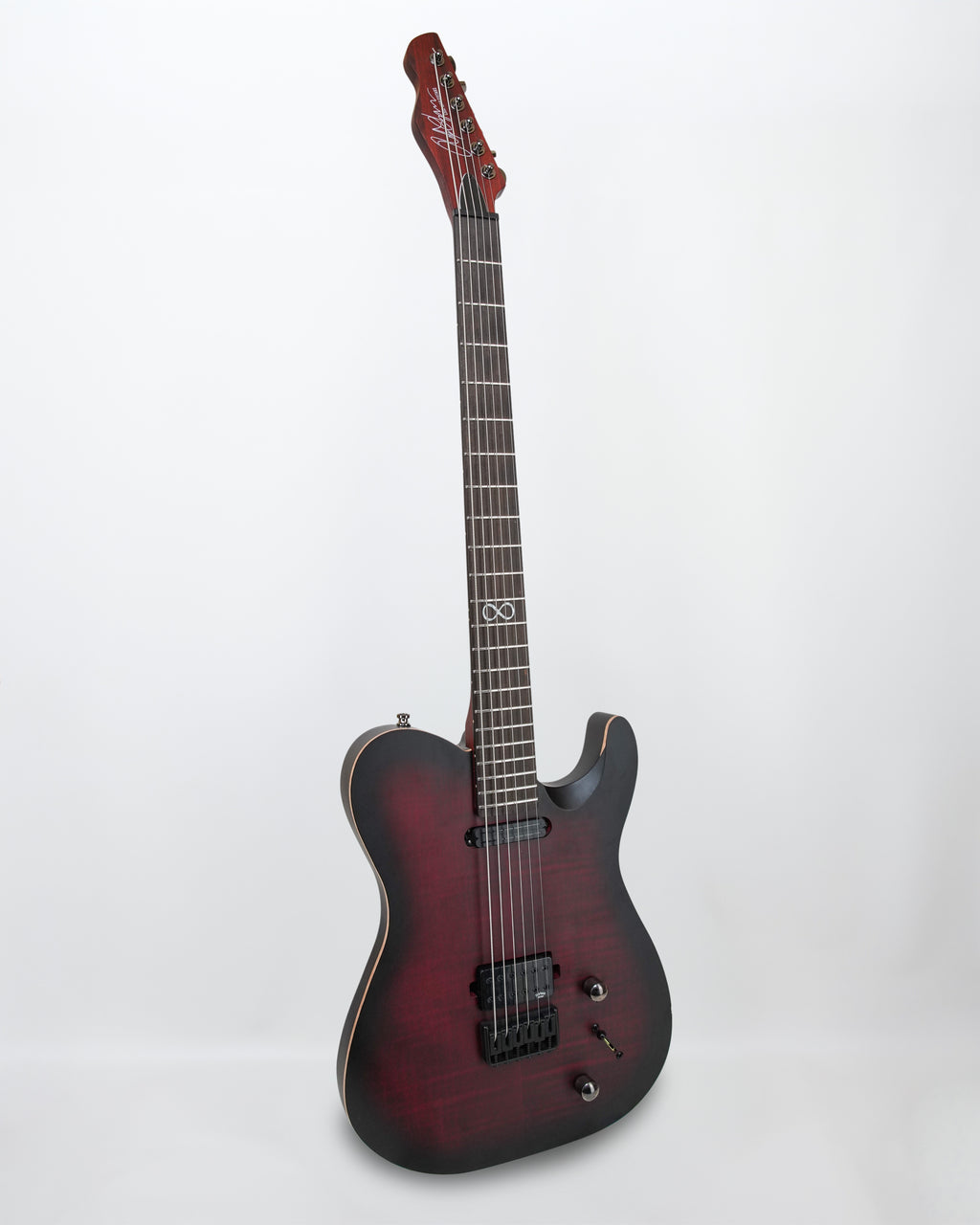 Chapman ML3 BEA Baritone Guitar, Alder body with Poplar Burl top, Wenge neck with ebony fretboard, 28" scale length, Hipshot locking tuners and Hipshot fixed bridge, Bare Knuckle silo in the bridge and Seymour Duncan Little '59 in the neck, 5-way super switch with coil split options.