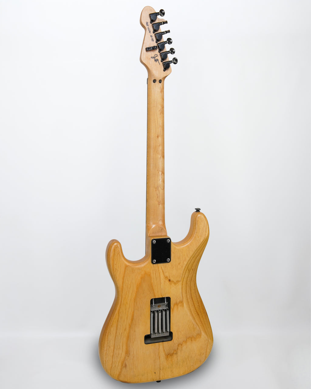 Guitars by Scott Custom SuperStrat, made for Leigh Stephens of Blue Cheer. Ash body, Maple neck with Rosewood fingerboard, 22 frets, Schaller license Floyd Rose, Fender Lace Sensor single-coil pickups, 5-way switch, single volume control, dual coil tap mini switches, locking nut. Accompanied by photos of Leigh playing the guitar and note from the builder.