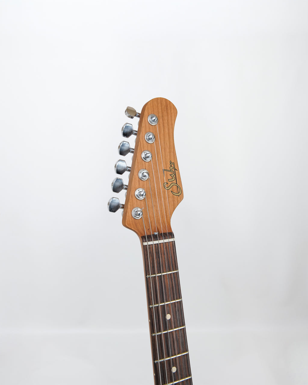 2013 Suhr Classic Antique, Seafoam Green relic nitro lacquer finish, Alder body, roasted Maple neck, Indian Rosewood fingerboard, Suhr locking gears, Tusq nut, aged green 3-ply pickguard, HSS pickup configuration, JST bridge humbucker, ML single-coil middle and neck pickups.